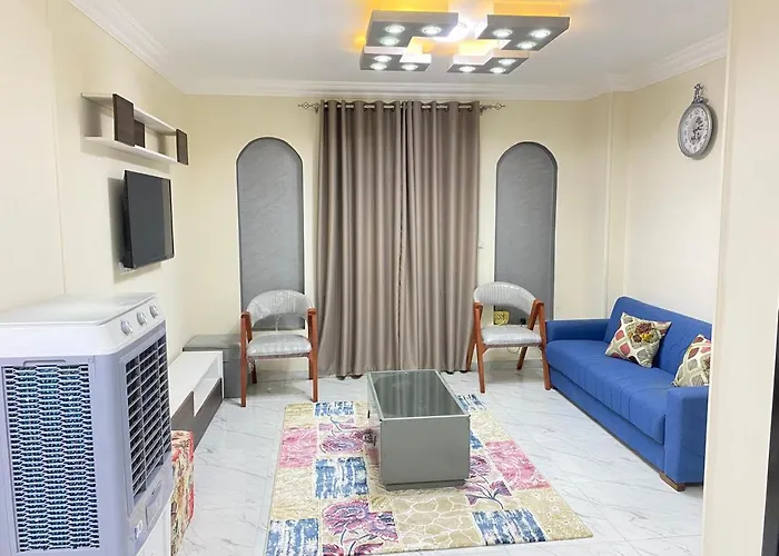 Situated approximately a 10-minute drive from the ancient wooden Khufu Ship, the spacious 160 m² Ghanima Pyramids House Cairo also boasts easy access to El Giza train station which is approximately 10 km away. The apartment features Wi-Fi, along with a private parking lot for guests travelling by car.
